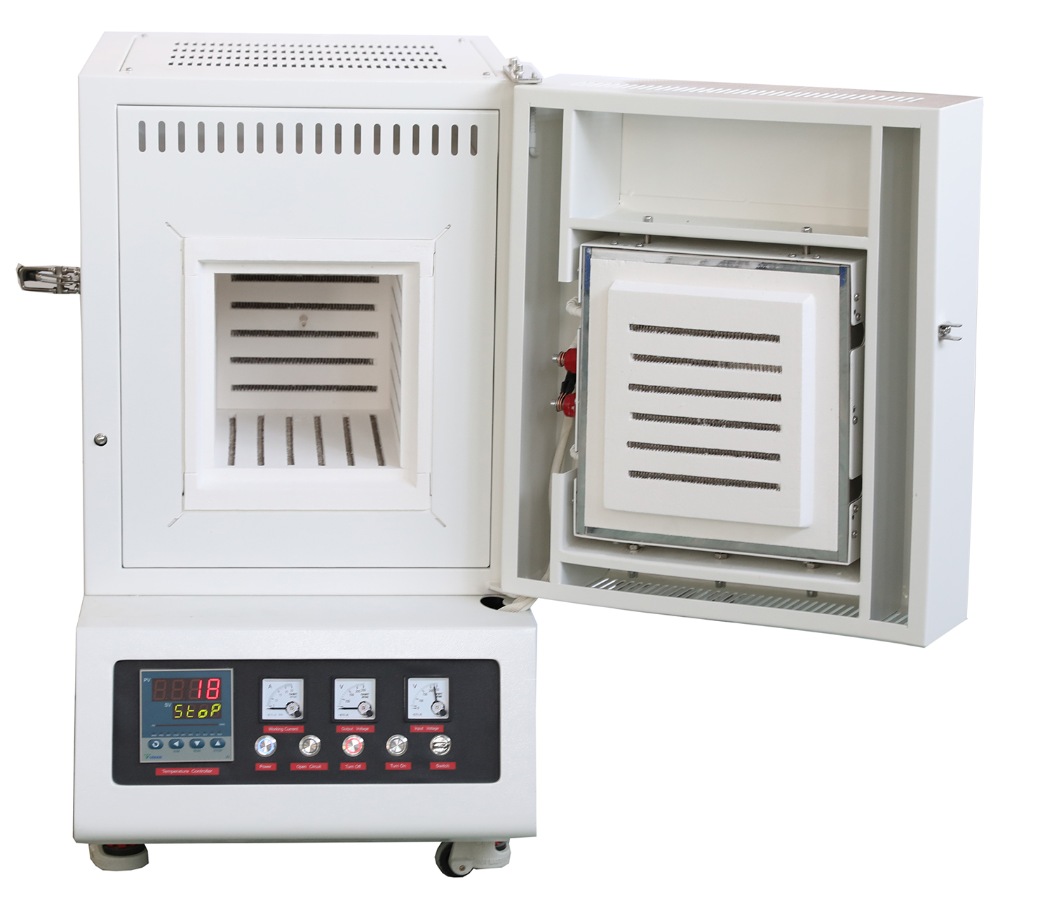 加熱面數 | 六面加熱,爐腔內上下左右、后方以及爐門上都布滿加熱絲,有效加熱區尺寸更大,溫場更均衡 | ||||